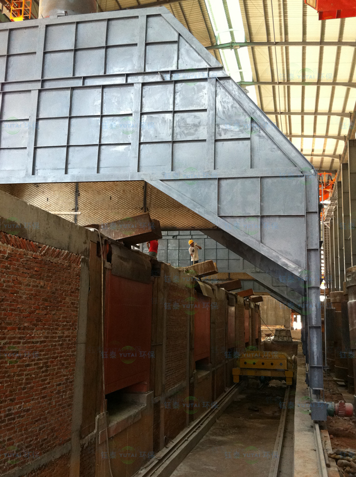 中頻電爐煙氣捕(bǔ)集係統(tǒng)由可移動覆(fù)蓋式鬥密閉集塵罩、加料設備、出(chū)料設備和除塵設備組(zǔ)成。移動集(jí)塵罩(zhào)完全覆蓋操作平台和出鐵口,使得中頻電爐的冶煉生產過程完全在集塵罩中進(jìn)行,實現了煙氣捕集(jí)的全過程(chéng)。