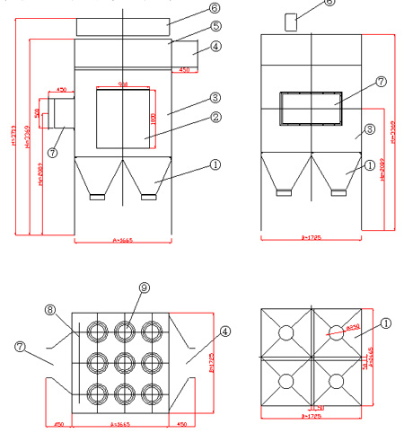 3、設備外形尺(chǐ)寸見附圖及尺寸(cùn)表。我公司還可根據用戶現場場地情況設計符合用戶要求外形的(de)除塵器。