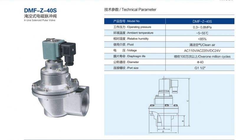 40S直角電磁脈衝閥為1.5寸脈衝閥,除塵器(qì)上常(cháng)用來噴吹2.5米長布袋(dài),噴吹布袋數量可以根據實(shí)際噴吹壓力和濾袋材質來決定。