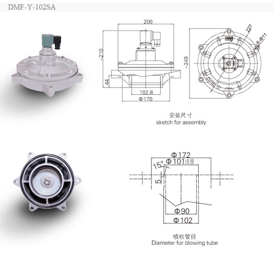 DMF-Y型電(diàn)磁脈衝閥為淹沒式閥(亦稱嵌入式閥),它直接安裝在分氣箱上,具有更好的流(liú)通特性。壓力損失有所下降,適合於氣源壓力較低的工(gōng)作場合。
