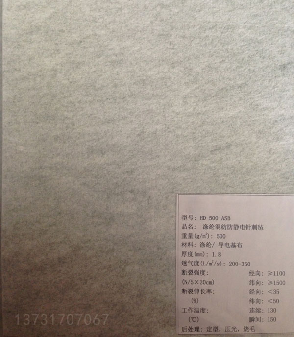 生產抗靜電濾布除了具(jù)有生產普通針刺氈的工藝外(wài),還要求在生產針(zhēn)刺氈的基布的經紗中並入導電纖維紗或在化學纖維中混入導(dǎo)電纖維等導電材(cái)料,我廠這兩種類型的抗靜電濾布均可生產。