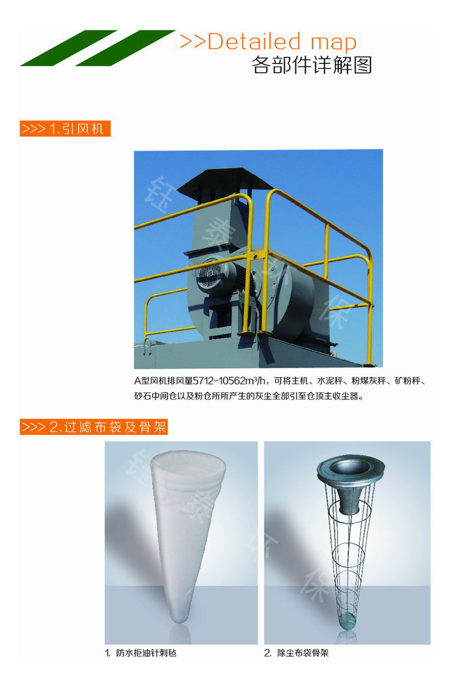 YT24倉頂除塵器主要應用於(yú)筒倉頂部進行收塵處理,是根據水泥(ní)、粉(fěn)煤灰、石灰等各(gè)種粉狀物質的粒徑,設計其除塵器濾袋的(de)O通過直(zhí)徑並考慮附著(zhe)力作用給濾袋孔徑的影響,使之完全可以滿足各類粉狀(zhuàng)物質的過濾(lǜ)要求。