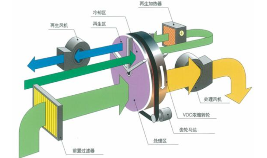 2、沸石轉輪吸附VOCs所產生的(de)壓損極低,可大大(dà)減少吸附風機電力能耗。