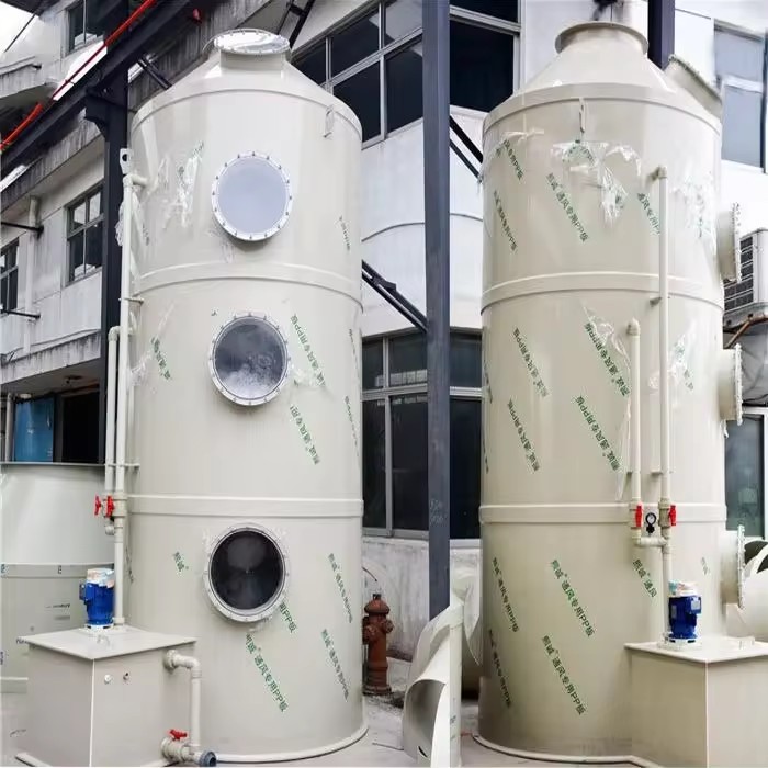 3.化學吸收劑從塔頂向下噴射,廢氣向上流動。廢氣與吸收(shōu)液完全接觸(chù),並通過反應除去。