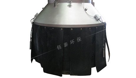 溜筒出口處的吸塵罩(zhào)為多層結構,內層為由皮帶膠組成的耐磨性能好、有一定相對硬度(dù)且具柔性的圍裙。皮帶(dài)膠圍裙主(zhǔ)要(yào)用於緩解高速(sù)物料(liào)帶來的衝擊,緩衝高(gāo)速氣流帶來的粉塵急速擴散。吸塵罩的皮帶膠圍裙也起支撐作用,可以避免由於負壓作用,外層帆布裙被吸扁,碰到料(liào)位(wèi)檢測裝置導致誤報(bào)信號或者(zhě)在溜(liū)筒出料口幹擾物料流動。吸(xī)塵罩外層為(wéi)雙重帆布圍裙,帆布裙的內層長度需比皮帶膠圍裙大,需完全罩住皮帶膠圍裙。帆布裙外(wài)層(céng)比(bǐ)內層(céng)略大(dà),需覆蓋(gài)住溜筒出(chū)口處(chù)的物料。雙重結構主要用(yòng)於(yú)控製粉塵外揚及(jí)外部風力作用將粉塵(chén)揚起(qǐ)擴散。整個吸塵罩在物料麵和溜筒出口間構成(chéng)一個相對密閉的(de)空間,防止粉塵外溢。