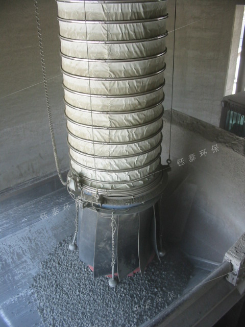 溜筒外(wài)部是用鋼圈骨架支撐的防塵罩(zhào),裝車機在工作時,使物料與溜筒出(chū)料口之間形成(chéng)相對密閉的空間,形成吸塵(chén)點。溜筒出口(kǒu)處的吸塵點、溜筒吸塵腔(qiāng)、臂架除塵管(guǎn)網和除塵(chén)器(qì)等構成裝(zhuāng)車機獨立的除塵係統。在除塵器(qì)離心(xīn)風機的驅(qū)動下,在溜筒出口處的吸塵(chén)點形成足夠的空氣流量和負壓,實現負(fù)壓吸塵的目的。
