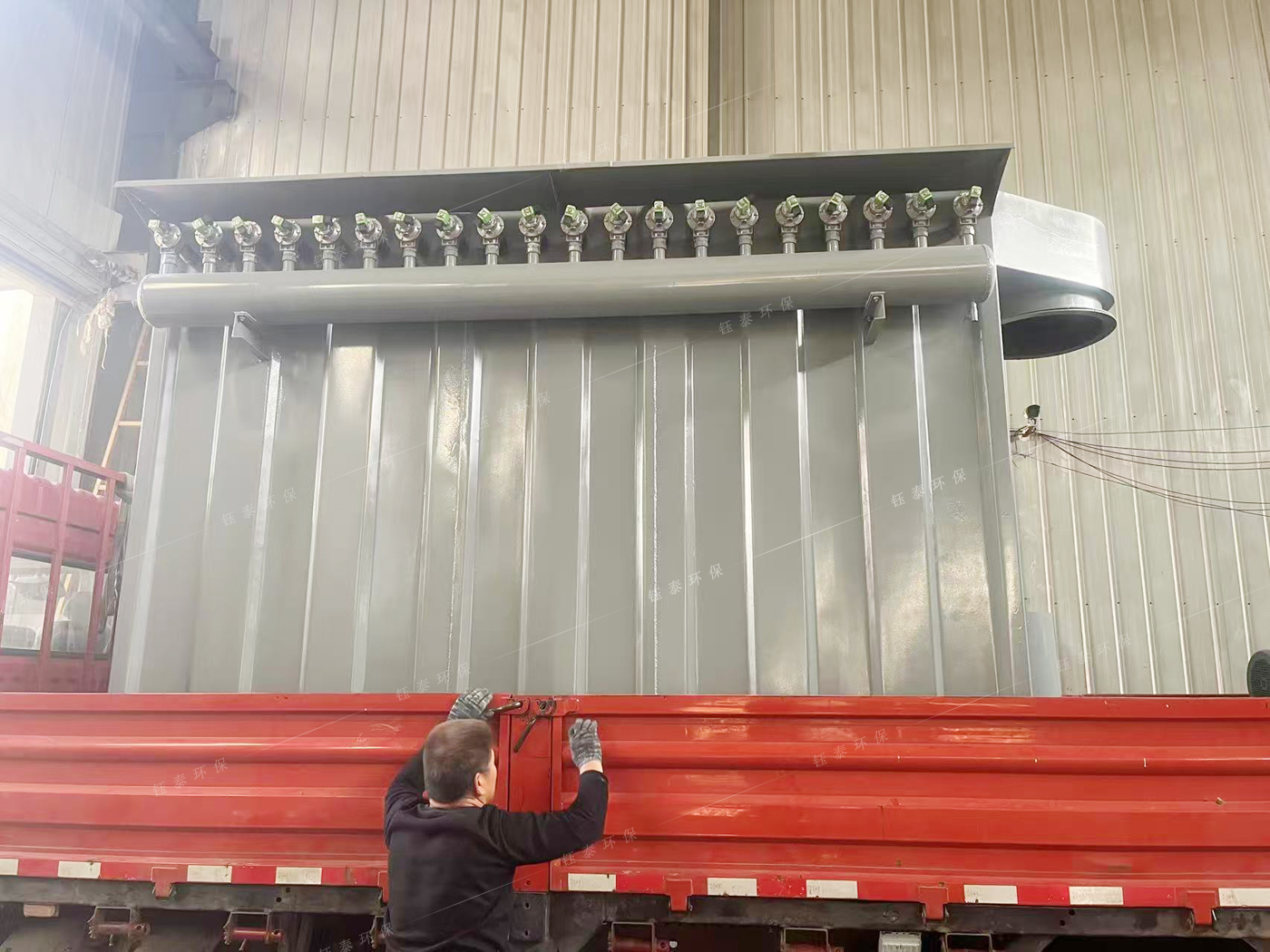 灰庫布(bù)袋(dài)除塵器改造實施計劃,為每(měi)台除塵器增設(shè)通風煙道至地麵與落地的抽塵風機連接,並在煙道設置手動調風閥ф460mm、更換落地抽塵風(fēng)機3台,檢修平台3套、更換上箱體花板、安裝褶皺濾袋、噴吹管、脈(mò)衝控製儀、氣源(yuán)壓力低值報警裝置、控製係統、真空釋放閥(fá)3台,逆止(zhǐ)閥3台。